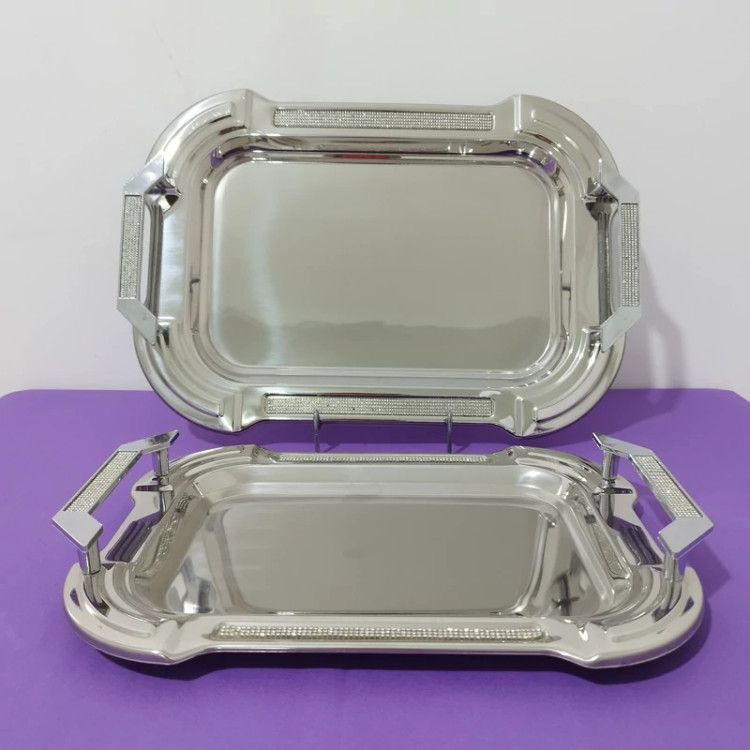 سینی استیل 2 تایی نگین دار مینیاتور مدل 002