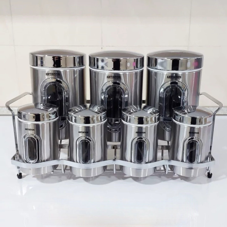 ست 8 پارچه ادویه و حبوبات آرتیستون استیل درب کروم کد 8346