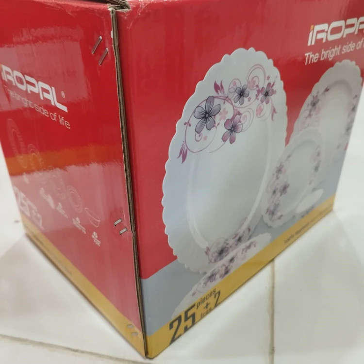 سرویس 25 پارچه آیروپال از جنس آرکوپال (اوپال)می باشد اوپال ماده ای است بین شیشه و چینی، به دلیل نازکتر بودن، نسبت به چینی وزن کمتری دارد و نسبت به شیشه زیباتر بوده و خاصیت نشکن دارد. این ظروف ساختاری کاملا شبیه به شیشه دارند و حالت چینی به خود میگیرند.با انجام یک عملیات حرارتی، اوپال ها در مقابل گرما مقاوم میشوند و قابلیت استفاده در مایکروفر و ماشین ظرفشویی را دارند. با توجه به قیمت ارزان و وجود شش عدد بشقاب غذا خوری و شش عدد خورش خوری و شش عدد پیاله و شش عدد بشقاب پیش دستی و یک دیس بزرگ، نیاز اکثر خانواده ها را برای استفاده روزمره از ظروف غذاخوری برطرف میکند.