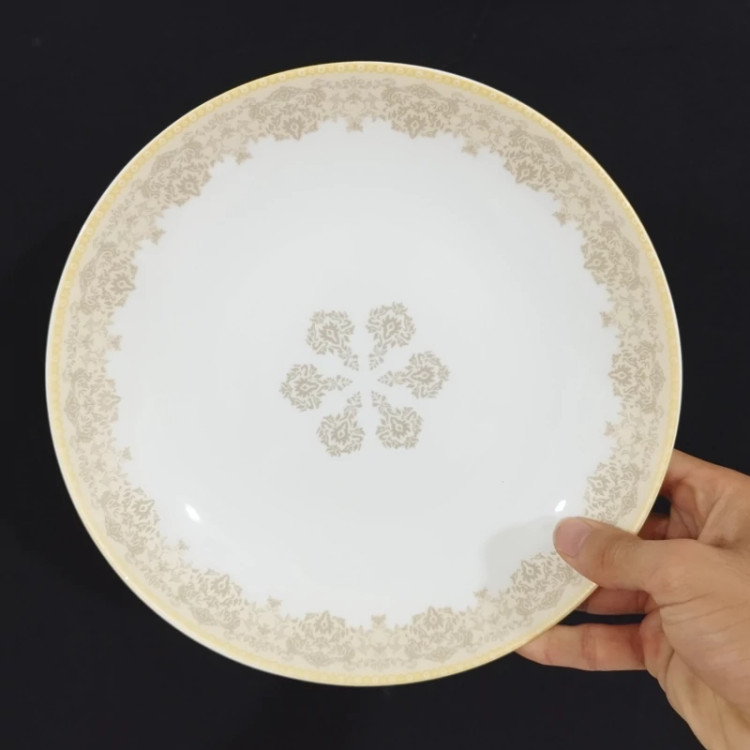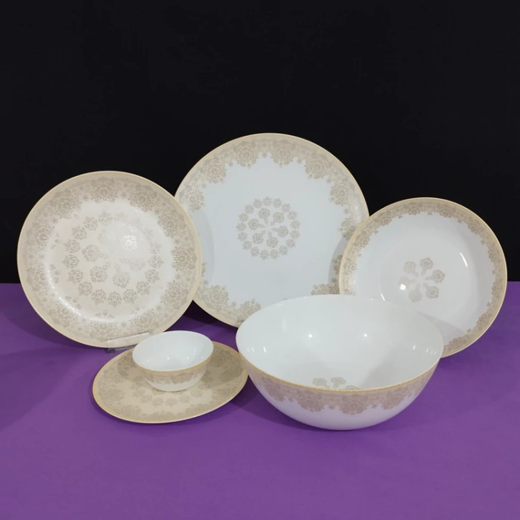 سرویس آرکوپال 26 پارچه مدل گرد استاتیس کرم یک سرویس آرکوپال تولید ایران می باشد که با یک قالب جدید در طرح و نقشی بسیار زیبا به سبک های اوپال اسپانیایی تولید شده این ظروف قابلیت تحمل دمای بالایی را دارند به همین دلیل قابلیت قرارگیری در مایکروویو را دارا می باشند همچنین این ظروف قابلیت شستشو در ماشین ظرفشویی را نیز دارند این سرویس شامل: 6 عدد بشقاب تخت برنج خوری 6 عدد بشقاب گود خورش خوری 6 عدد پیش دستی دسر خوری 6 عدد پیاله ماست خوری 1 عدد دیس 1 عدد کاسه سالاد بزرگ می باشد که در یک بسته بندی بسیار زیبا و با دوام قرار میگیرد
