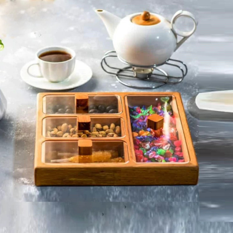 جعبه پذیرایی یا تی بگ 4 خانه چوبی مدل 11038