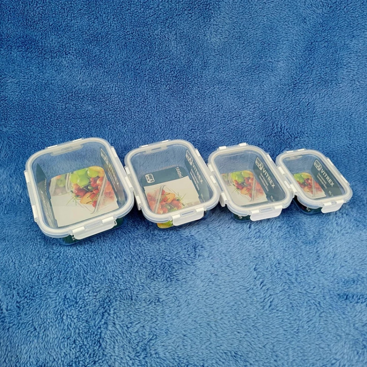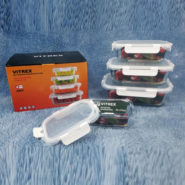 ظرف نگهدارنده غذا 4 تکه مستطیل درب دار قفلی برند ویترکس vitrex مدل 370