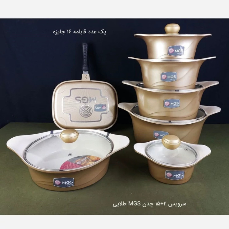 سرویس قابلمه گرانیتی 17 پارچه MGS طلایی با ارسال رایگان