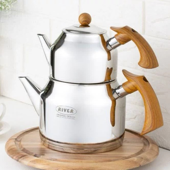 ست کتری قوری ریور طراحی مدرنی دارد و تمام نیازهای روزانه را برآورده می کند استفاده کتری و قوری استیل به حفظ طعم و عطر اصلی چای و قهوه کمک می کند. استیل علاوه بر حفظ عطر و طعم نوشیدنی، پایداری بالایی در برابر حرارت و حرارت غیرمستقیم دارد و گذر زمان تاثیر خاصی در کیفیت و ظاهر آن ندارد.