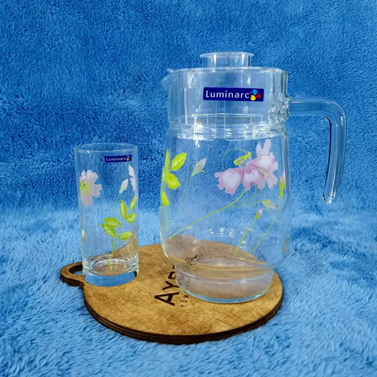 پارچ و لیوان 7 پارچه لومینار ک گلدار مدل آنیمون ارسال رایگان