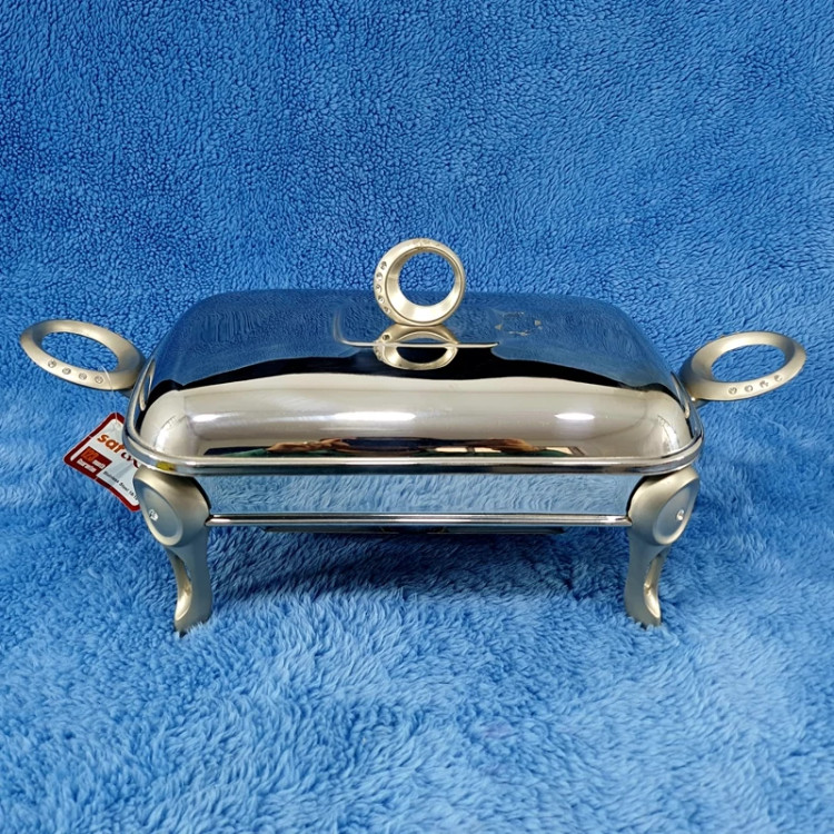 یکی از ظروفی که زیبنده سفرههای کدبانوهای ایرانی در مجالس و میهمانیهاست، ظرف سوفله است. حال اگر این ظرف دو عدد شمع وارمر نیز داشته باشد جلوه زیبا و شاعرانهتری نیز به سفره خواهد داد. چیزی که میتواند هنر آشپزی کدبانوهای ایرانی را دوچندان کند و به آن جلوه و زیبایی بیشتری بدهد، استفاده از یک ظرف زیبا برای سرو آن است. سوفله مستطیل یکی از آن ظروفی است که میتواند به هنر آشپزی هر کدبانویی جلوهای متفاوت و زیبا ببخشد. این سوفله از استیل براق ساختهشده که جلوه خیرهکنندهای به آن داده البته همانگونه که از تصویر محصول نمایان است دارای چهار پایه براق با انحنای زیبا و دودسته بر روی بدنه و یک دسته بر روی درب استیل به شکل حلقه با نگینهای براق، زیبایی آن را دوچندان کرده است. ویژگی دیگری که این سوفله دارد داشتن یک محفظه شمع وارمر است که علاوه بر گرم نگهداشتن غذا یک حس شاعرانهای را نیز به سفره میبخشد. ویژگی دیگری که این سوفله دارد امکان استفاده از ظرف پیرکس آن در ماکروویو و شستشوی آن با ماشین ظرفشویی است. بهطورکلی این محصول با طراحی زیبا و استفاده از استیل براق و ابعاد مناسب میتواند زینتبخش سفره تمام کدبانوهای ایرانی بوده و یک هدیه مناسب برای آنها باشد.
