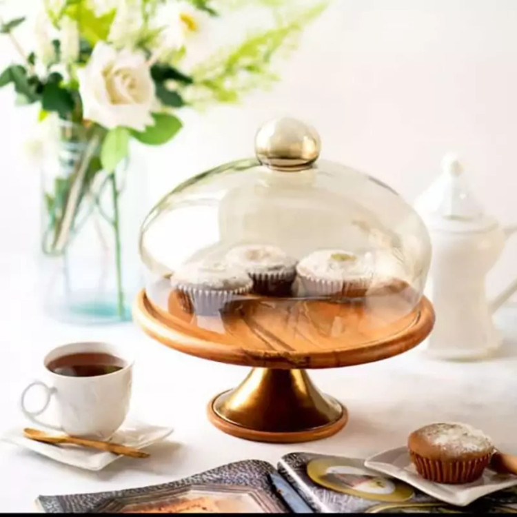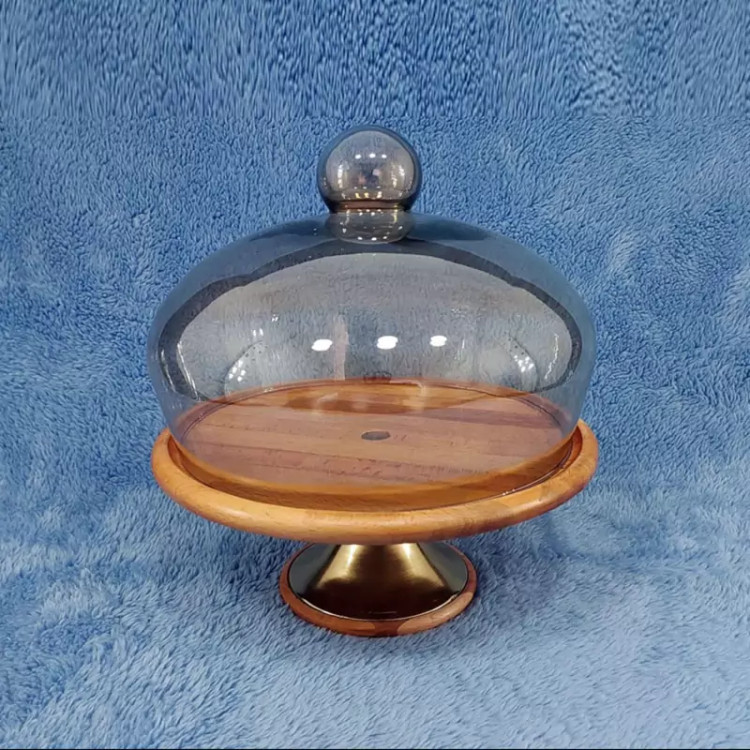 کاپ کیک پایه دار 11039 با درب شیشه ای دودی و چوب راش گرجستانی