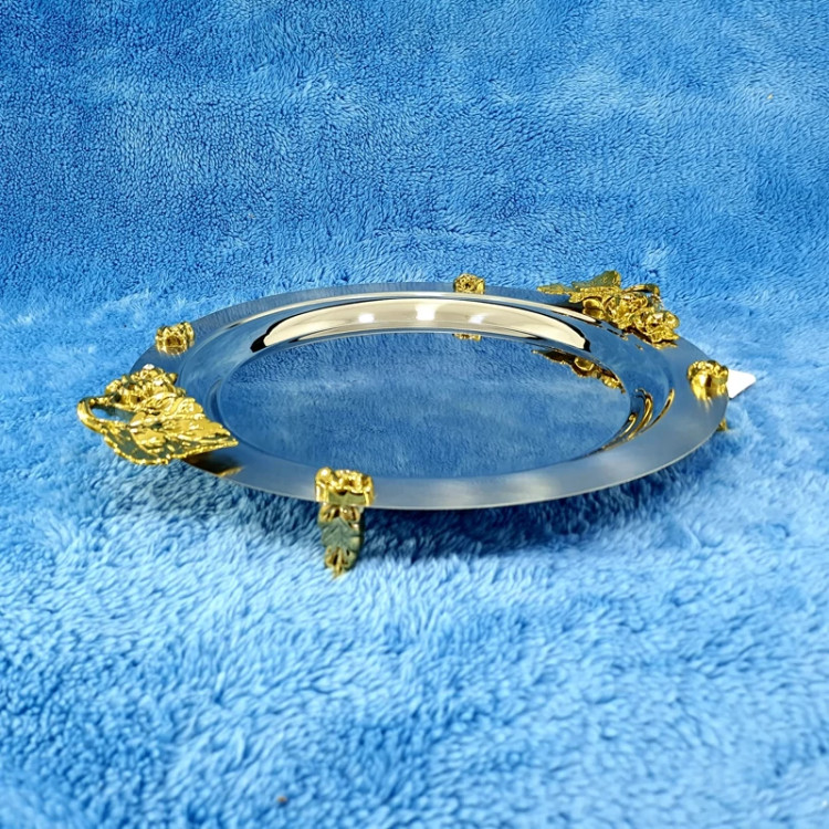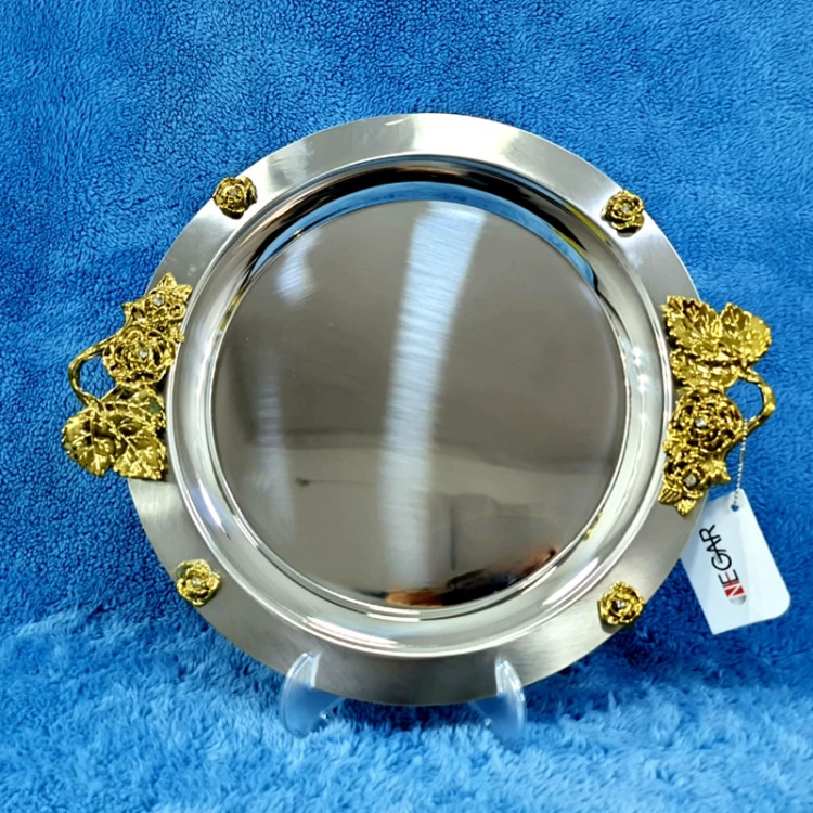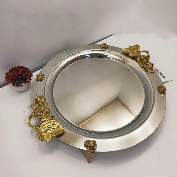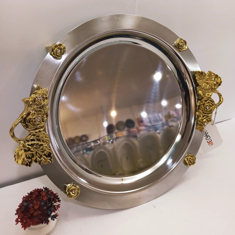 سینی استیل نگار گرد بزرگ مدل رز کد 309 گل طلا