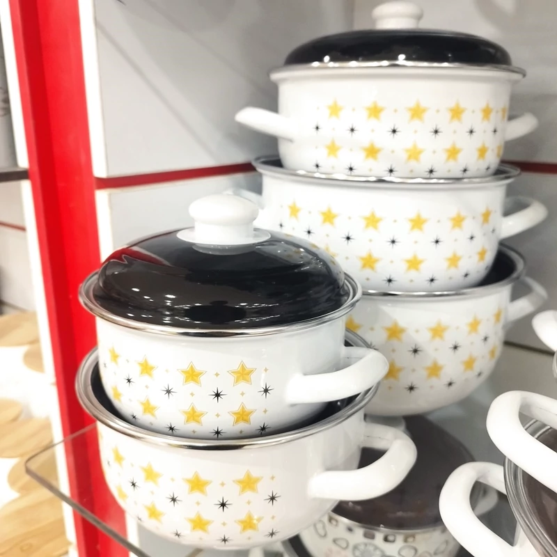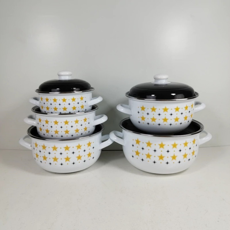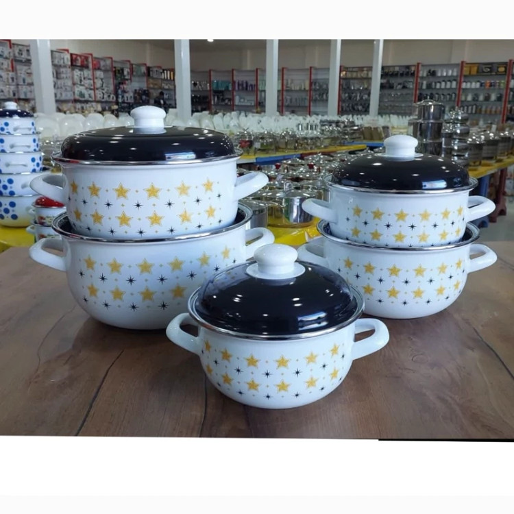 سرویس قابلمه 10 پارچه لعابی ظروفی مناسب و منحصربهفرد برای پخت انواع خورش، مربا،سوپ، آش و... محسوب میشود. این ظرف دوستداشتنی از ورق فلز مرغوب با روکش لعاب ساخته شده است تا مقاومت لازم در برابر حرارت و گرما را داشته باشد و با گذشت زمان دچار آسیبدیدگی نشود؛ بهاینترتیب با خیالی آسوده میتوانید این قابلمه را روی شعلهی مستقیم اجاقگاز قرار دهید. ظروف لعابی در مقایسه با تفلون یا انواع ظروف فلزی روکشدار، گزینهای سالمتر برای طبخ غذاست. در دو طرف بدنهی ظرف دستههایی تعبیه شدهاند که حمل و جابهجایی ظرف را برایتان سادهتر خواهند کرد. طراحی فانتزی و جذاب این سرویس در کنار رنگ های شفاف با درخشش، زیبایی و جذابیت آن را دوچندان کردهاند. این سرویس زیبا شامل 5 قابلمه به سایز های 24 - 22 - 20 - 18 , 16 سانتیمتر می باشد این ظروف در رنگ ها و طرح های مختلفی تولید شده که می توانید با توجه به رنگ آشپزخانه تان آن را انتخاب کنید.با طبخ و سرو غذا داخل این ظرف خوشساخت و زیبا، میتوانید سفرهای رنگین و اشتها برانگیز برای خانواده یا مهمانان بچینید.