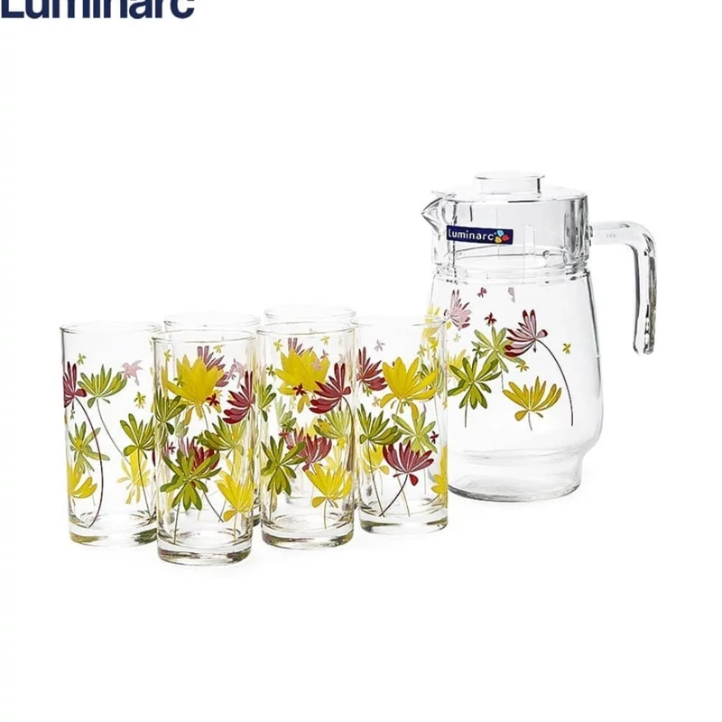 پارچ و لیوان گلدار لومینارک مدل کریزی فلاور یک پارچ و لیوان بسیار زیبا و خوش دست بوده که توسط برند لومینارک فرانسه و با کیفیت بسیار بالا تولید شده