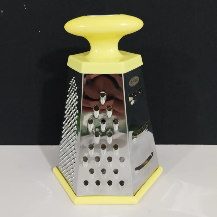 رنده استیل 6 تیغه ریور کد 8491 یکی از لوازم پرکاربرد و ابزار مکمل آشپزخانه میباشد که به آسان شدن عمل ریز کردن انواع مواد غذایی کمک میکند. رنده دستی آشپزخانه استیل، در مدل 6 طرفه یا 6 تیغه وسیلهای با تیغههای تیز که سبزیجات، میوهها، صیفیجات و انواع مواد غذایی را به قطعات ریز تبدیل میکند.