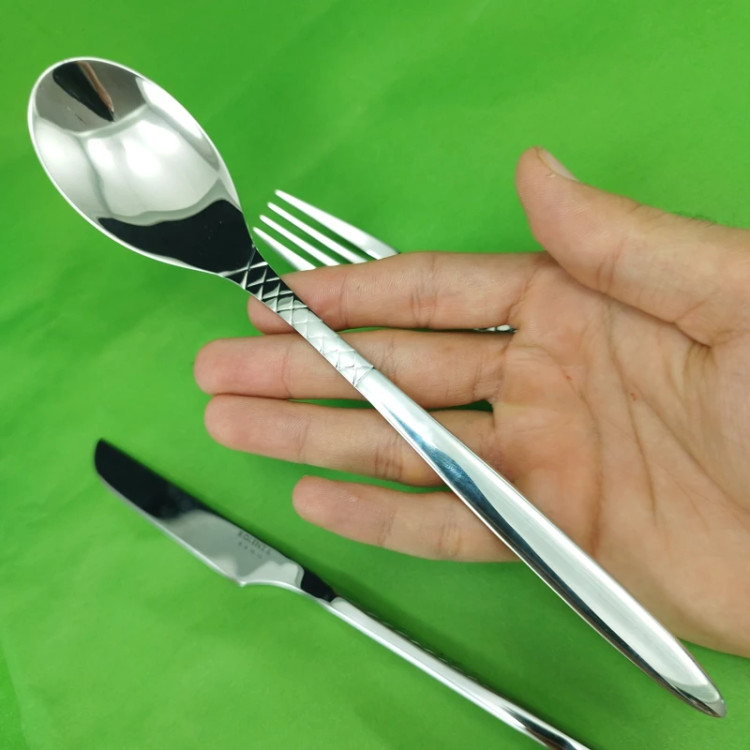 سرویس قاشق و چنگال رولنزا از استیل ضد زنگ 18/10 ساخته شده است. با این ست قاشق و چنگال، حس لوکس بودن وجزئیات بیشتری را به میز خود اضافه کنید. نگهداری از این ست قاشق و چنگال آسان است و در هنگام استفاده در ماشین ظرفشویی برق و جلای خود را حفظ میکند. این ست می تواند گزینه مناسبی برای هدیه دادن برای عزیزان شما در گرمای وجود خانه هایشان باشد. ست قاشق و چنگال ساده اما ظریف و حس زیبایی بیشتری را به چیدمان میز شما می بخشد.شما به تنها با در دست گرفتن این ست،ظرافت و زیبایی چشم نواز این محصول را خواهید دید. اگر به دنبال دستیابی به تم های جامع و خاص و زیبا در آشپزخانه خود هستید،اگر به دنبال ست های با کیفیت و ماندگار هستید،اگر به دنبال محصولی هستید که توجه همگان را به خود جلب کند ست های رولنزا برای شما بسیار مناسب هستند،ما به شما پیشنهاد میکنم حتما این ست ها را در خانه خود داشته باشید
