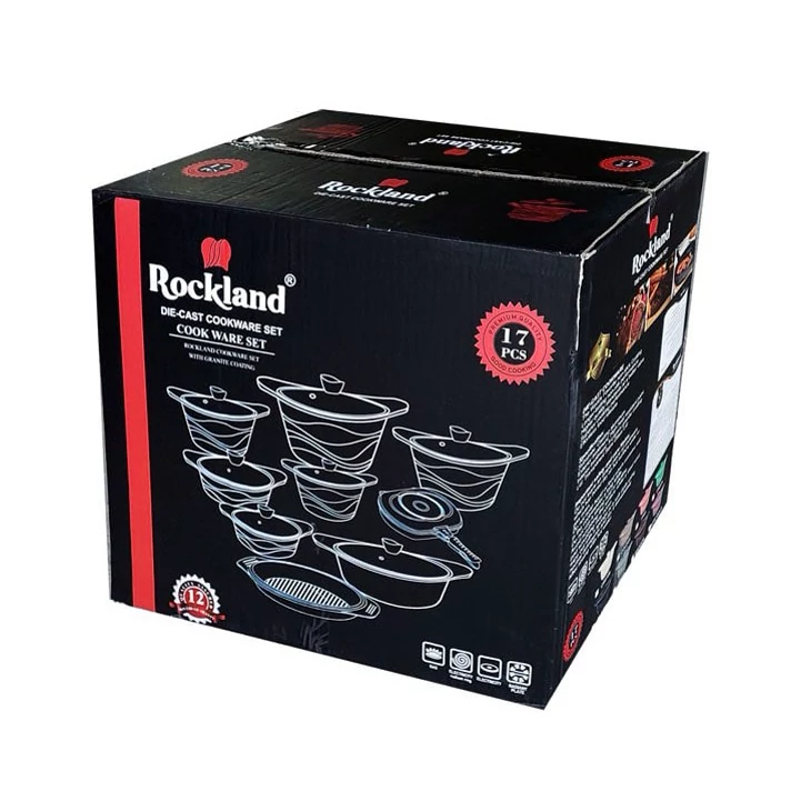 سرویس قابلمه گرانیتی راکلند 17 پارچه یک سرویس عالی و کاربردی است. پوشش گرانیتی و نشست آن و طرح زیبای روی این سرویس قابلمه جلوه ویژهای را به آن داده است.