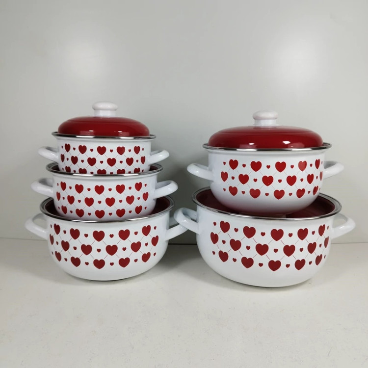 سرویس قابلمه 10 پارچه لعابی ظروفی مناسب و منحصربهفرد برای پخت انواع خورش، مربا،سوپ، آش و... محسوب میشود. این ظرف دوستداشتنی از ورق فلز مرغوب با روکش لعاب ساخته شده است تا مقاومت لازم در برابر حرارت و گرما را داشته باشد و با گذشت زمان دچار آسیبدیدگی نشود؛ بهاینترتیب با خیالی آسوده میتوانید این قابلمه را روی شعلهی مستقیم اجاقگاز قرار دهید. ظروف لعابی در مقایسه با تفلون یا انواع ظروف فلزی روکشدار، گزینهای سالمتر برای طبخ غذاست. در دو طرف بدنهی ظرف دستههایی تعبیه شدهاند که حمل و جابهجایی ظرف را برایتان سادهتر خواهند کرد. طراحی فانتزی و جذاب این سرویس در کنار رنگ های شفاف با درخشش، زیبایی و جذابیت آن را دوچندان کردهاند. این سرویس زیبا شامل 5 قابلمه به سایز های 24 - 22 - 20 - 18 , 16 سانتی متر می باشد این ظروف در رنگ ها و طرح های مختلفی تولید شده که می توانید با توجه به رنگ آشپزخانه تان آن را انتخاب کنید.با طبخ و سرو غذا داخل این ظرف خوشساخت و زیبا، میتوانید سفرهای رنگین و اشتها برانگیز برای خانواده یا مهمانان بچینید.