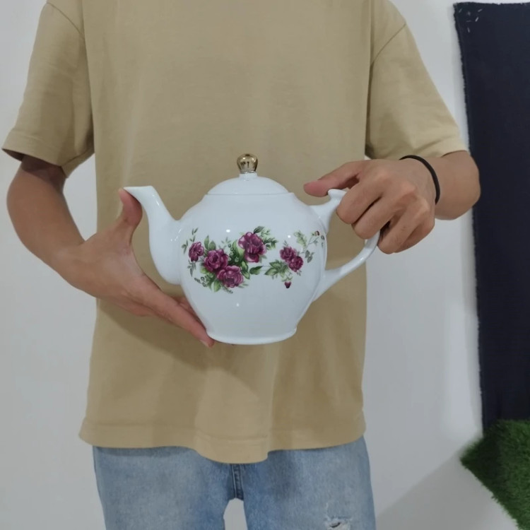 قوری چینی تقدیس مدل گل سرخ سایز 10 ارسال رایگان