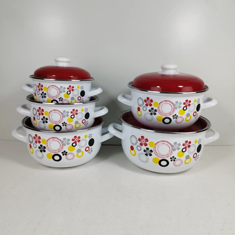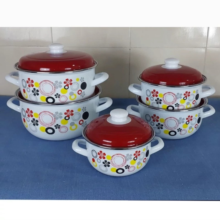 سرویس قابلمه 10 پارچه لعابی ظروفی مناسب و منحصربهفرد برای پخت انواع خورش، مربا،سوپ، آش و... محسوب میشود. این ظرف دوستداشتنی از ورق فلز مرغوب با روکش لعاب ساخته شده است تا مقاومت لازم در برابر حرارت و گرما را داشته باشد و با گذشت زمان دچار آسیبدیدگی نشود؛ بهاینترتیب با خیالی آسوده میتوانید این قابلمه را روی شعلهی مستقیم اجاقگاز قرار دهید. ظروف لعابی در مقایسه با تفلون یا انواع ظروف فلزی روکشدار، گزینهای سالمتر برای طبخ غذاست. در دو طرف بدنهی ظرف دستههایی تعبیه شدهاند که حمل و جابهجایی ظرف را برایتان سادهتر خواهند کرد. طراحی فانتزی و جذاب این سرویس در کنار رنگ های شفاف با درخشش، زیبایی و جذابیت آن را دوچندان کردهاند. این سرویس زیبا شامل 5 قابلمه به سایز های 24 - 22 - 20 - 18 , 16 سانتی متر می باشد این ظروف در رنگ ها و طرح های مختلفی تولید شده که می توانید با توجه به رنگ آشپزخانه تان آن را انتخاب کنید.با طبخ و سرو غذا داخل این ظرف خوشساخت و زیبا، میتوانید سفرهای رنگین و اشتها برانگیز برای خانواده یا مهمانان بچینید.