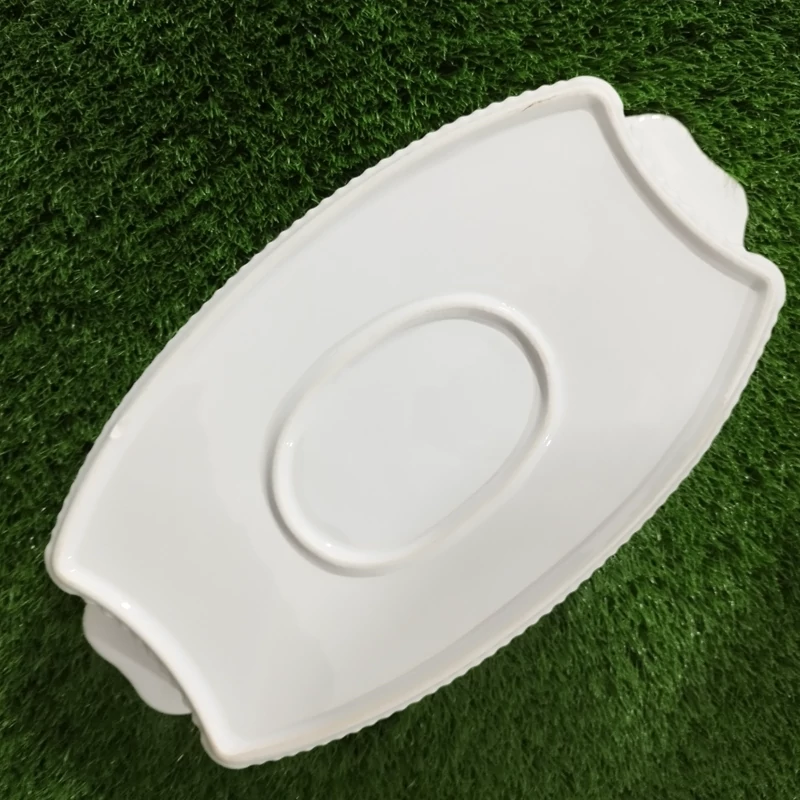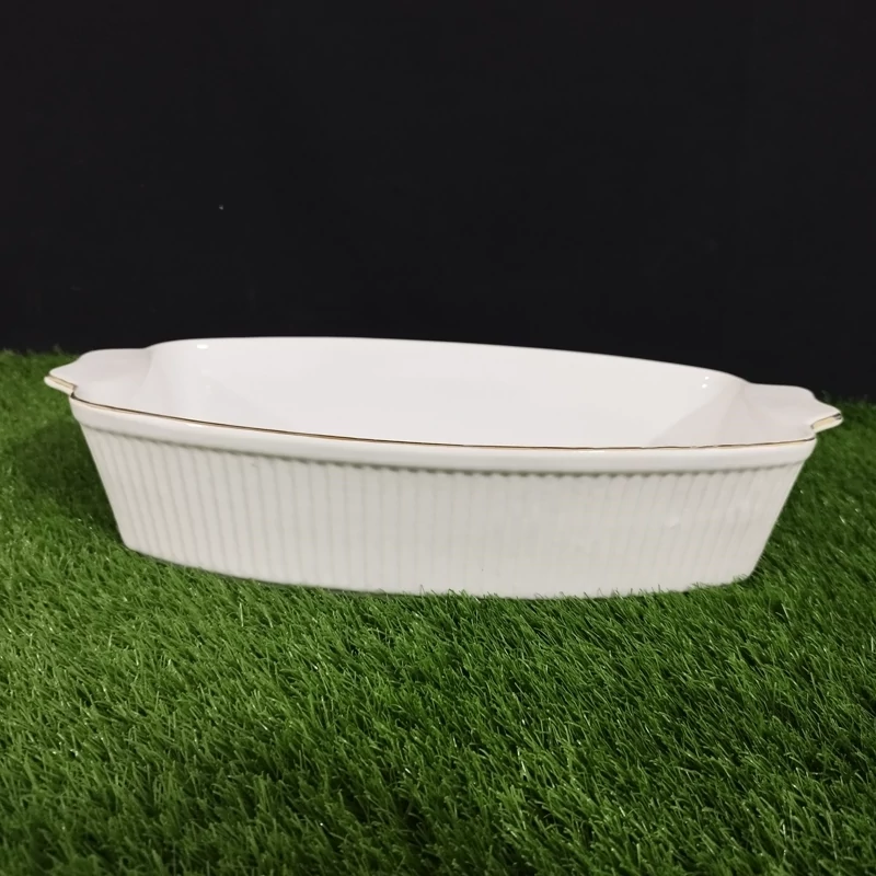 تابه مستطیل لب طلا سرامیکی مدل ماهور از جذاب ترین وسیله هایی است که در میهمانی می توانید به عنوان ظرف پذیرایی استفاده کنید. این محصول از جنس و با لعابی سفید رنگ پوشیده است. شما می توانید از این تابه رابرای سرو غذا استفاده کنید.