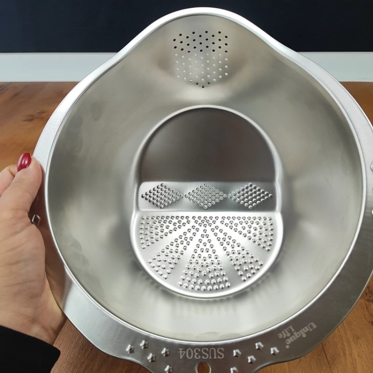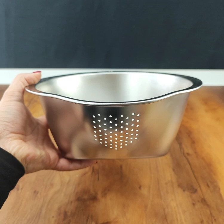 این آبکش میتواند برای شستن برنج، سبزیجات و میوهها استفاده شود. طراحی آن به گونهای است که آب اضافی به سرعت خارج میشود و مواد غذایی را خشک و آماده مصرف میکند. با استفاده از این آبکش میتوانید مطمئن باشید که تمامی آلودگیها و خاکی که ممکن است روی میوهها و سبزیجات وجود داشته باشد، به راحتی جدا میشود.