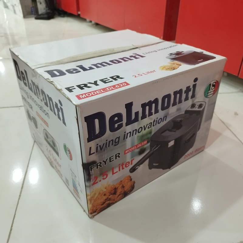 سرخ کن دلمونتی مدل DL620 یکی دیگر از سرخ کنهای برند معتبر دلمونتی میباشد. این مدل از بدنه پلاستیکی و به رنگ مشکی تولید شده و ظرفیت آن 2.5 لیتر است. سرخ کن Delmonti دارای قابلیت تنظیم دما و زمان است که برای این کار از دو ولوم چرخشی دستگاه استفاده خواهد شد. دمای سرخ کن تا 190 درجه سانتیگراد و تایمر آن تا 30 دقیقه قابل تنظیم است.