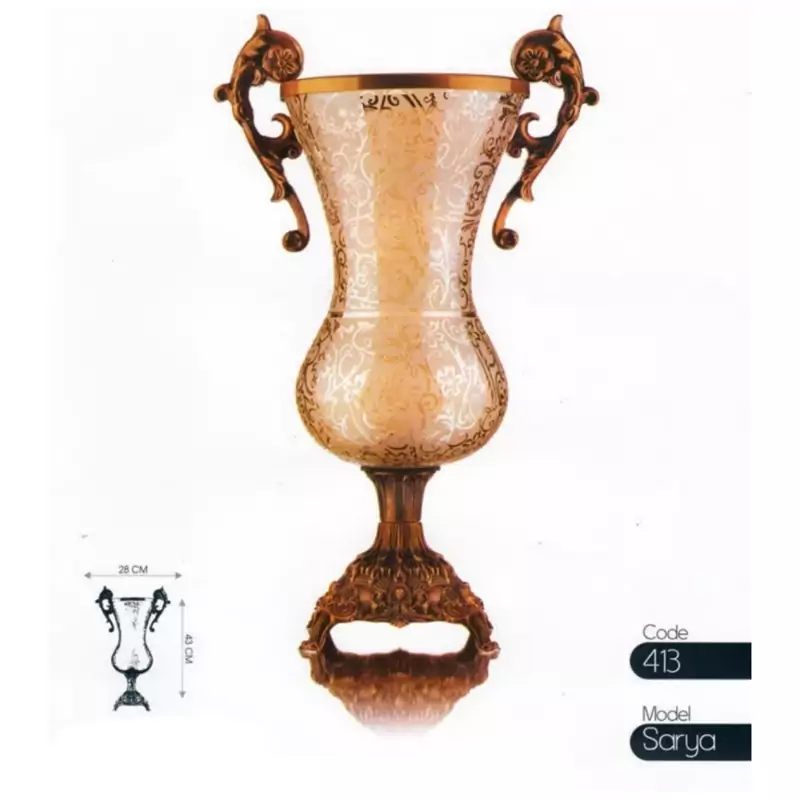گلدان پایه دار طرح ساریا کد 413 دارای طراحی زیبا وخاص مناسب برای منزل و محل کار ارتفاع محصول 37 سانت قطر دهانه 17 سانت
