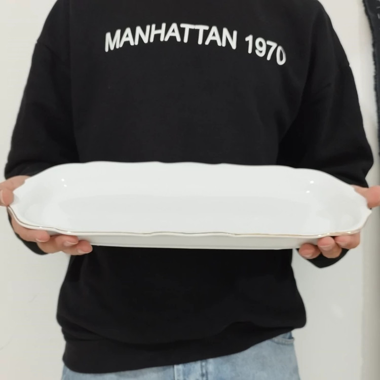 رولت خوری لب طلا سرامیکی از جذاب ترین وسیله هایی است که در میهمانی می توانید به عنوان ظرف پذیرایی استفاده کنید. این محصول از جنس و با لعابی سفید رنگ پوشیده است. شما می توانید از این تابه رابرای سرو غذا استفاده کنید.