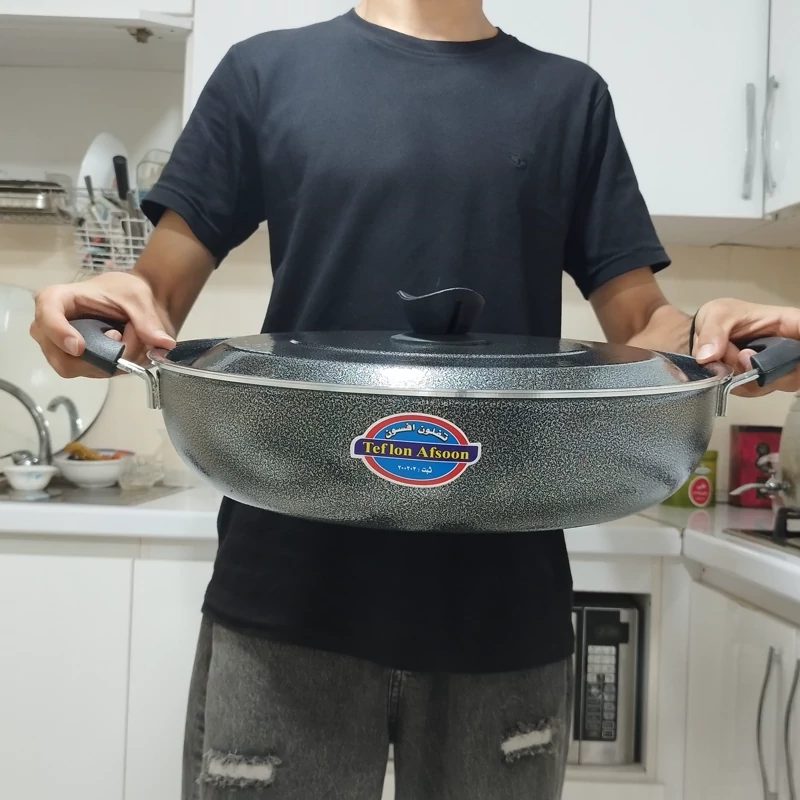 پوشش داخلی این تابه از جنس تفلون نچسب و مقاوم تولید شده