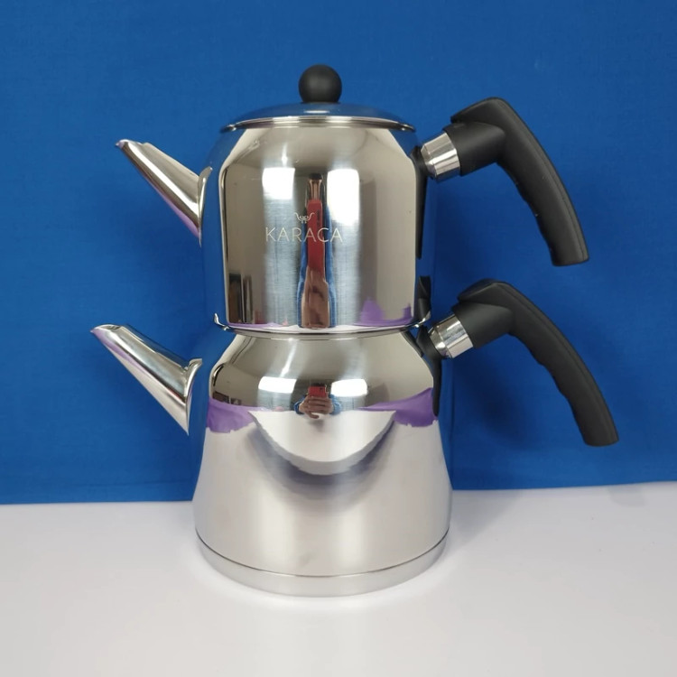 یکی از برندهای معروف و محبوب در زمینه لوازم منزل و لوازم آشپزخانه برند کاراجا می باشد که در کشور ترکیه مشغول تولید محصولات خود می باشد. این محصول متفاوت از نظر طراحی و زیبایی نسبت به دیگر محصولات موجود در بازار توانسته در مدت بسیار اندکی مشتریان زیادی از ترکیه و اروپا جذب خود نماید، این کتری قوری باکیفیت و زیبا از استیل ضدزنگ نیکل - با روکش کروم 18/10 مرغوب ترین نوع استیل میباشد که از نظر دوام و کیفیت استیل بی نظیر بوده و مادام العمر کیفیت خود را حفظ می نماید. دسته های این محصول شیک وزیبا میباشد