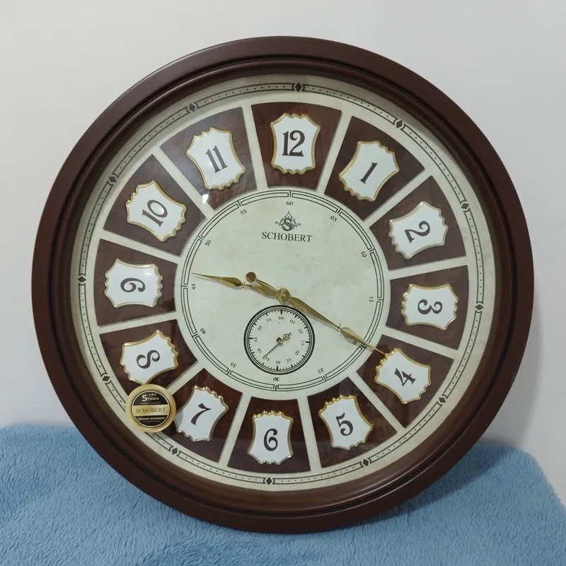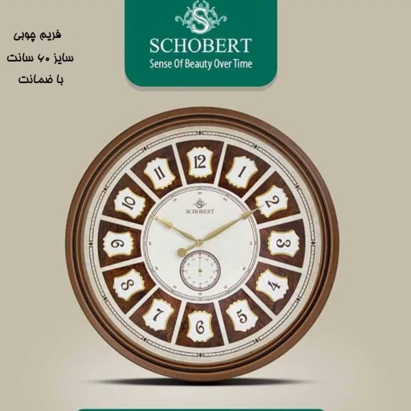 این ساعت ساخت شرکت شوبرت میباشد که تماماً ساخته شده از چوب و همچنین دارای 2 موتور روانگرد و بدون صدا همراه با مصرف کم باتری میباشد که یک موتور نشان دهنده دقیقه و ساعت و دیگری برای نمایش ثانیه میباشد. اختلاف رنگ صفحه و اعداد برجسته با عقربه باعث شده ساعت از فاصله دور هم خوانا باشد..