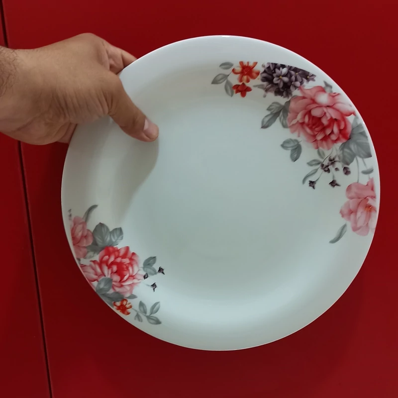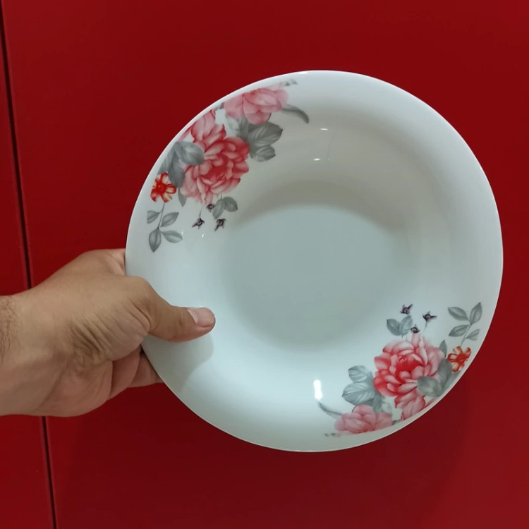 سرویس آرکوپال 26 پارچه مدل لادن طرح مهسان صورتی یک سرویس آرکوپال تولید ایران می باشد که با یک قالب جدید در طرح و نقشی بسیار زیبا به سبک سرویس های اوپال اسپانیایی تولید شده این ظروف قابلیت تحمل دمای بالایی را دارند به همین دلیل قابلیت قرارگیری در مایکروویو را دارا می باشند همچنین این ظروف قابلیت شستشو در ماشین ظرفشویی را نیز دارند این سرویس شامل: 6 عدد بشقاب تخت برنج خوری 6 عدد بشقاب گود خورش خوری 6 عدد پیش دستی دسر خوری 6 عدد پیاله ماست خوری 1 عدد دیس 1 عدد کاسه سالاد بزرگ می باشد که در یک بسته بندی بسیار زیبا و با دوام قرار میگیرد