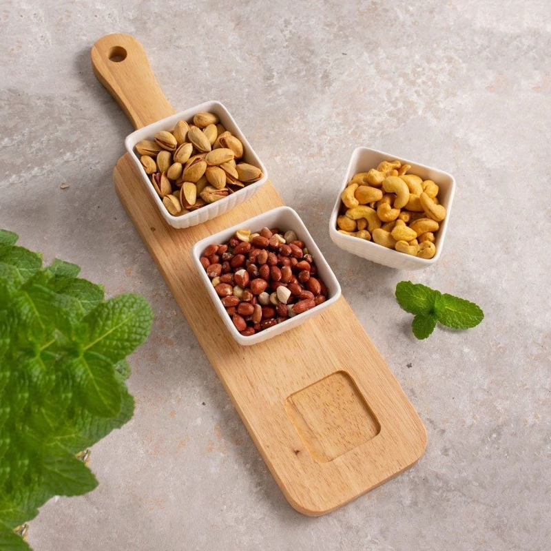 اردوخوری سه خانه با سینی چوبی دسته دار