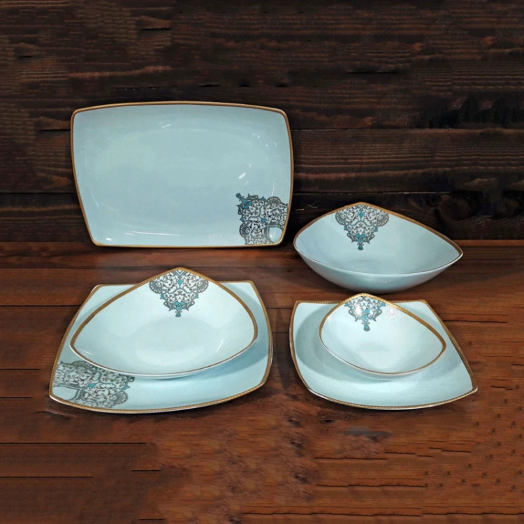 سرویس 30 پارچه چینی پردیس مدل نارنیا فیروزه ای ارسال رایگان