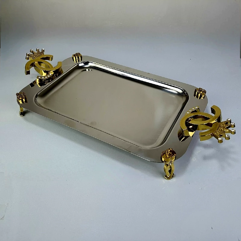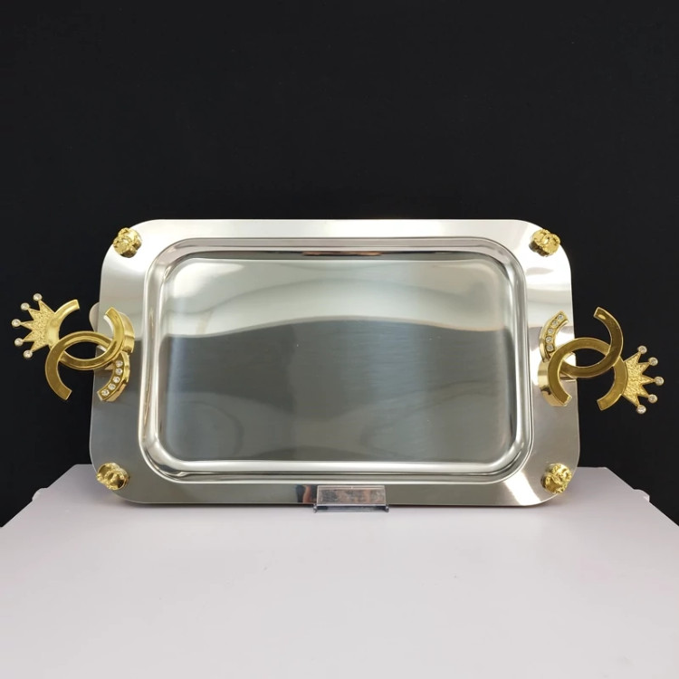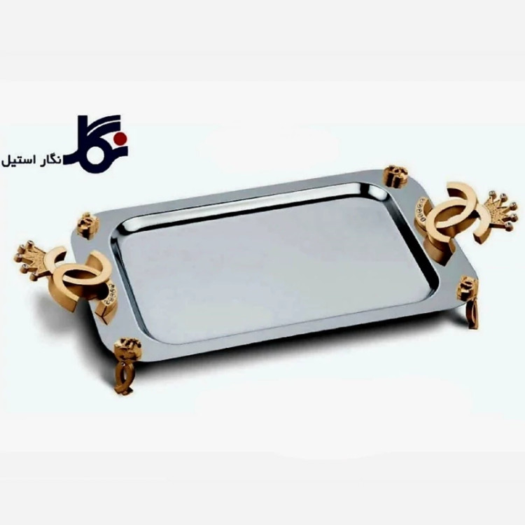سینی استیل مستطیل نگار بزرگ مدل شنل طلایی کد 454 ارسال رایگان