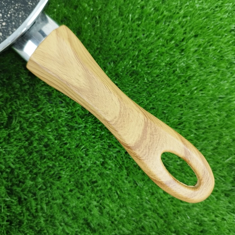با دسته ای از جنس باکالیت نسوز که طراحی شبیه به چوب دارد و باعث زیبایی چندین برابری این تابه ی پر کاربرد شده