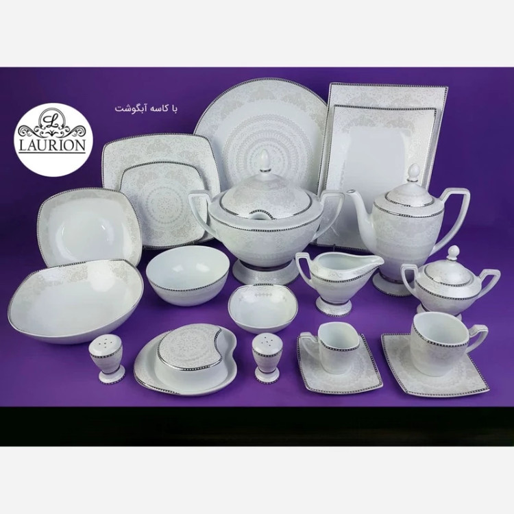 سرویس چینی 156 پارچه لورین مدل آکای پلاتین 24 نفره با ارسال رایگان