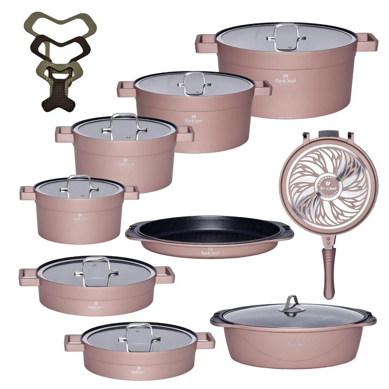 سرویس قابلمه گرانیتی 21 پارچه راکلند مدل تمیس رنگ رزگلد با ارسال رایگان