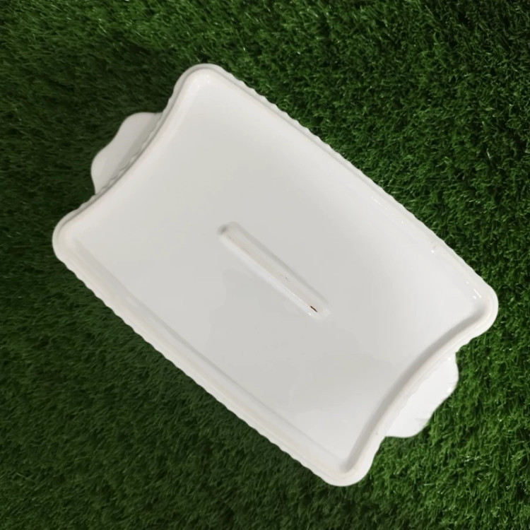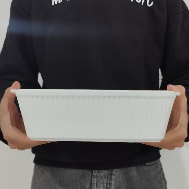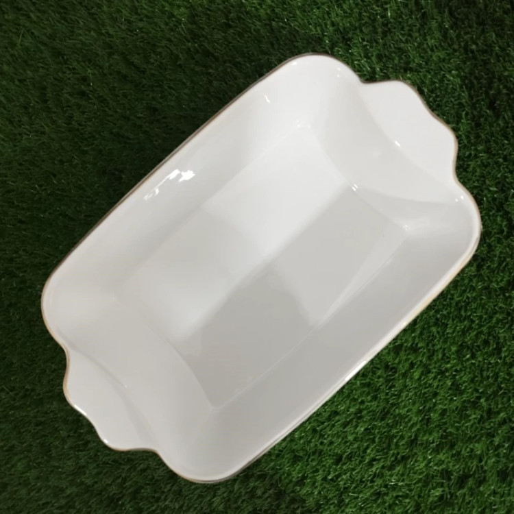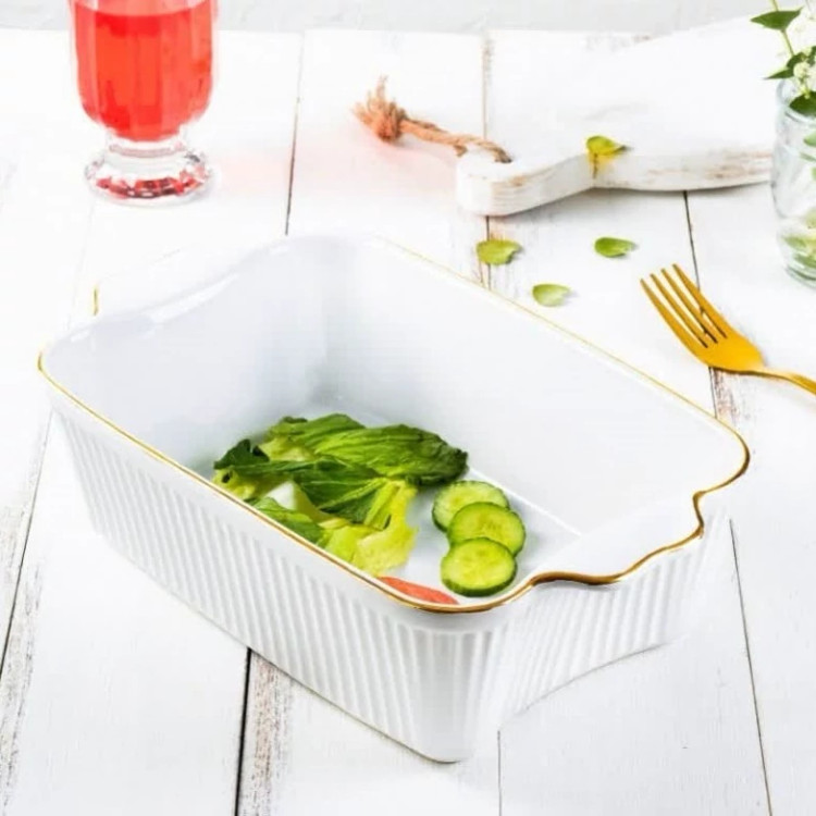 تابه مستطیل لب طلا سرامیکی مدل شیاردار از جذاب ترین وسیله هایی است که در میهمانی می توانید به عنوان ظرف پذیرایی استفاده کنید. این محصول از جنس و با لعابی سفید رنگ پوشیده است. شما می توانید از این تابه رابرای سرو غذا استفاده کنید.
