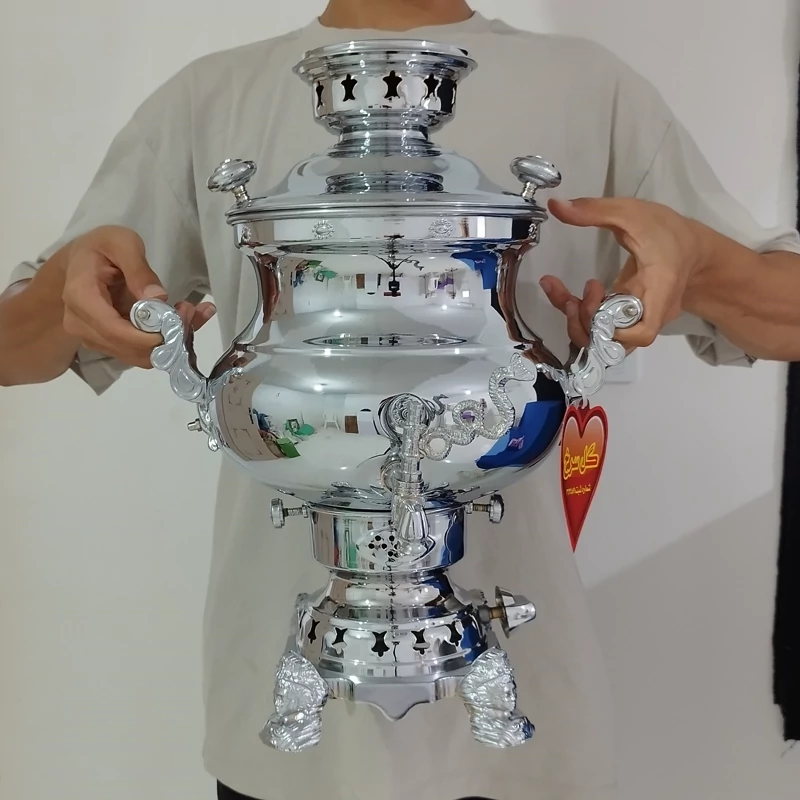 سماور های گازی گل سرخ با بدنه ای از جنس برنج تولید شده و قسمت بیرونی بدنه از ترکیب نیکل و کروم بسیار صیقلی می باشد