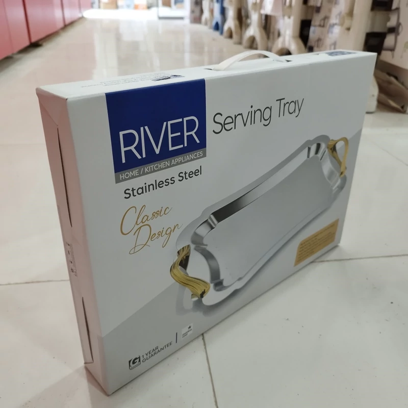 سینی استیل مستطیل متوسط پایه دار ریور کد 7216Bبسته 1 عددی با ارسال رایگان