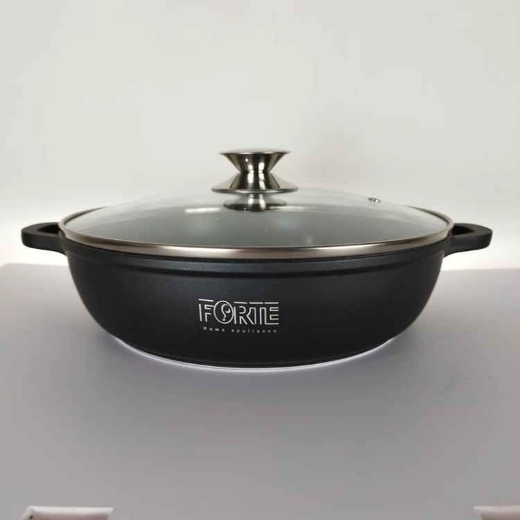 تابه گرانیتی دو دسته سایز 28 برند فورته مشکی FORTE
