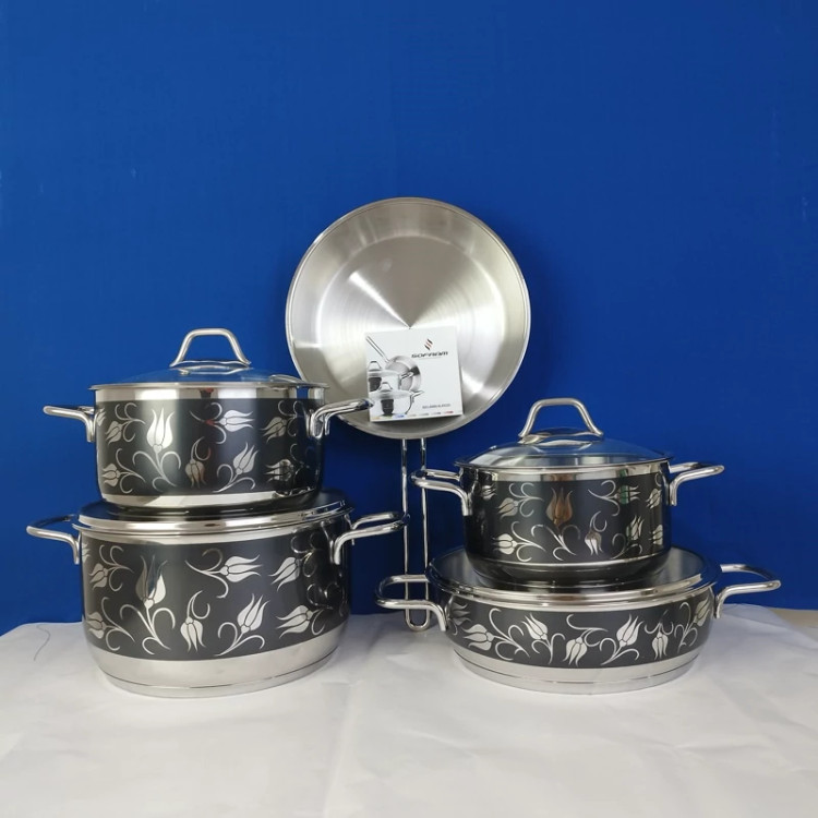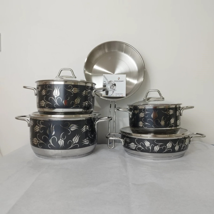 سرویس قابلمه استیل 9 پارچه گلدار سوفرام مشکی ترکیه