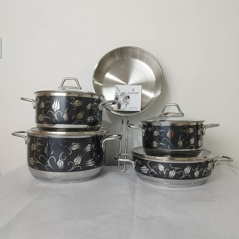 سرویس قابلمه استیل 9 پارچه گلدار سوفرام مشکی ترکیه