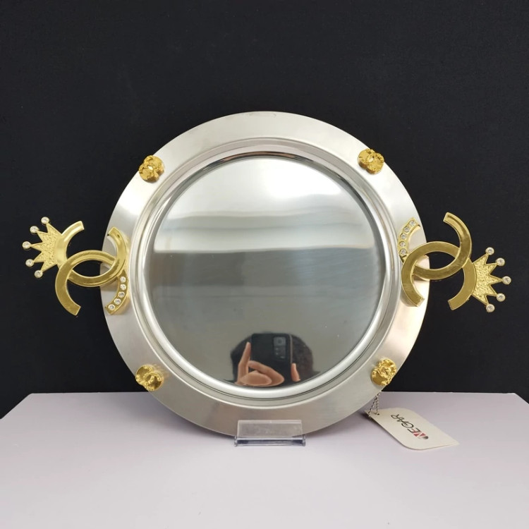 سینی استیل گرد نگار متوسط مدل شنل طلایی کد 458 ارسال رایگان