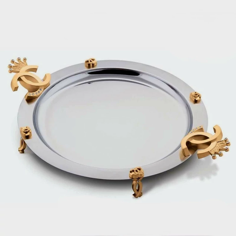 سینی استیل گرد نگار متوسط مدل شنل طلایی کد 458 ارسال رایگان