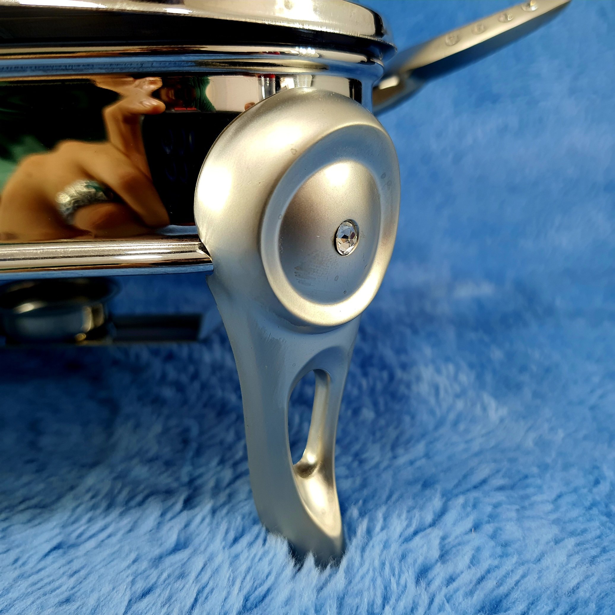 یکی از ظروفی که زیبنده سفرههای کدبانوهای ایرانی در مجالس و میهمانیهاست، ظرف سوفله است. حال اگر این ظرف دو عدد شمع وارمر نیز داشته باشد جلوه زیبا و شاعرانهتری نیز به سفره خواهد داد. چیزی که میتواند هنر آشپزی کدبانوهای ایرانی را دوچندان کند و به آن جلوه و زیبایی بیشتری بدهد، استفاده از یک ظرف زیبا برای سرو آن است. سوفله مستطیل یکی از آن ظروفی است که میتواند به هنر آشپزی هر کدبانویی جلوهای متفاوت و زیبا ببخشد. این سوفله از استیل براق ساختهشده که جلوه خیرهکنندهای به آن داده البته همانگونه که از تصویر محصول نمایان است دارای چهار پایه براق با انحنای زیبا و دودسته بر روی بدنه و یک دسته بر روی درب استیل به شکل حلقه با نگینهای براق، زیبایی آن را دوچندان کرده است. ویژگی دیگری که این سوفله دارد داشتن دو محفظه شمع وارمر است که علاوه بر گرم نگهداشتن غذا یک حس شاعرانهای را نیز به سفره میبخشد. این سوفله با گنجایش 3 لیتر شامل: یک عدد ظرف پیرکس مستطیل و پایه نگهدارنده با دو جای وارمر به همراه شمع است. ویژگی دیگری که این سوفله دارد امکان استفاده از ظرف پیرکس آن در ماکروویو و شستشوی آن با ماشین ظرفشویی است. بهطورکلی این محصول با طراحی زیبا و استفاده از استیل براق و ابعاد مناسب میتواند زینتبخش سفره تمام کدبانوهای ایرانی بوده و یک هدیه مناسب برای آنها باشد.