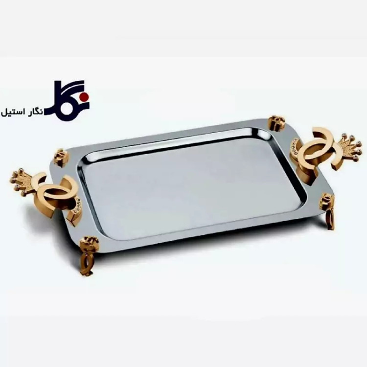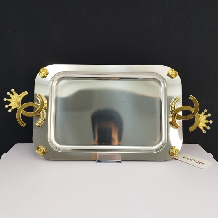 سینی استیل مستطیل نگار متوسط مدل شنل طلایی کد 452 ارسال رایگان