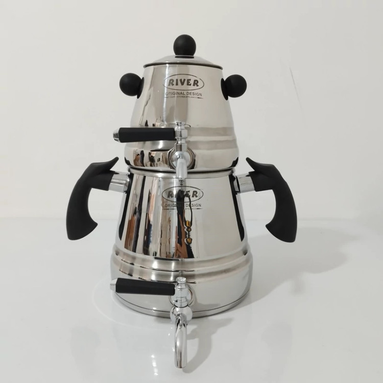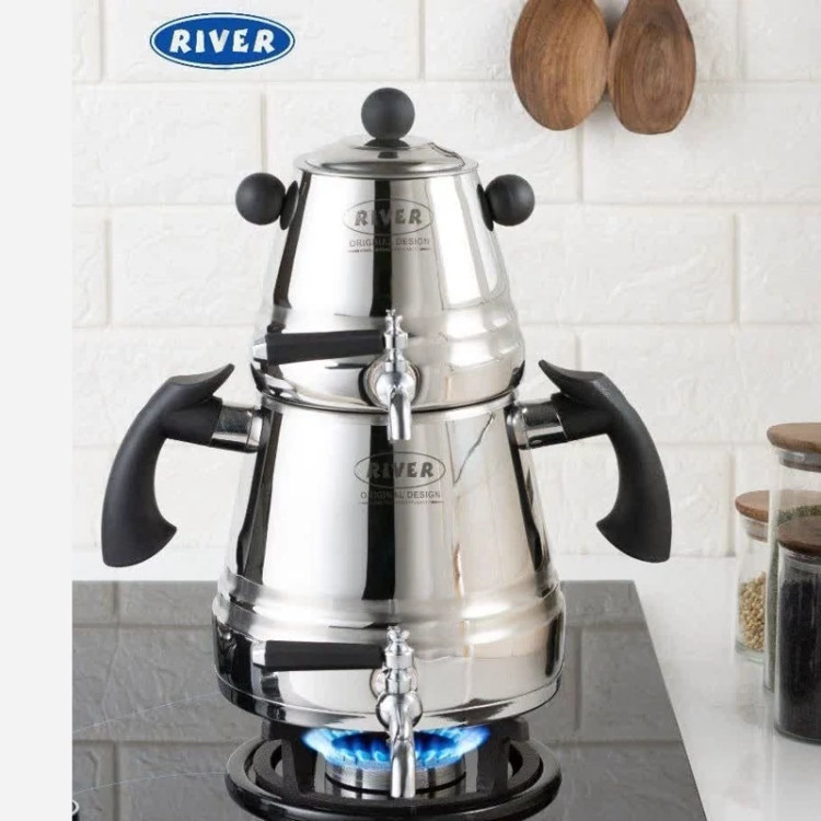 ست کتری قوری ریور طراحی مدرنی دارد و تمام نیازهای روزانه را برآورده می کند استفاده کتری و قوری استیل به حفظ طعم و عطر اصلی چای و قهوه کمک می کند. استیل علاوه بر حفظ عطر و طعم نوشیدنی، پایداری بالایی در برابر حرارت و حرارت غیرمستقیم دارد و گذر زمان تاثیر خاصی در کیفیت و ظاهر آن ندارد.