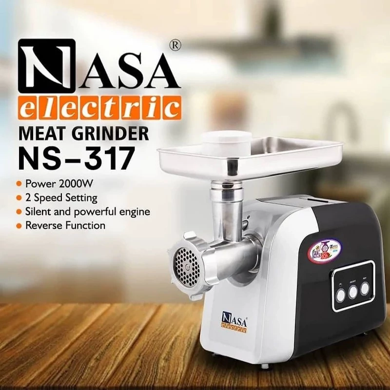 چرخ گوشت ناسا الکتریک NS-317 یکی از چرخ گوشتهای پرطرفدار ناسا الکتریک است، که از موتور قدرتمند و کارآیی بالایی بهره میبرد. چرخ گوشت ناسا الکتریک 317 برخلاف دیگر محصولات تنها از پلاستیک در ساختار بدنه استفاده کرده است، که از نوع ABS بوده و کیفیت بالایی دارد و براق بودنش باعث زیباتر دیده شدن محصول میشود. ترکیب رنگ مشکی و خاکستری در بدنه باعث دو تکه به نظر رسیدن این چرخ گوشت میشود، به طوری که رنگ مشکی به بخش پشتی و رنگ خاکستری به بخش جلویی بدنه اختصاص داده شده است. موتور قدرتمندی که در این دستگاه به کار رفته، دارای حداکثر توان 2000 وات میباشد و با این قدرت بالا میتواند در کمترین زمان حجم قابل توجهی گوشت را چرخ کند