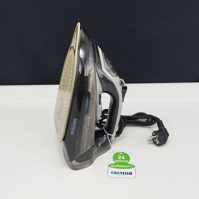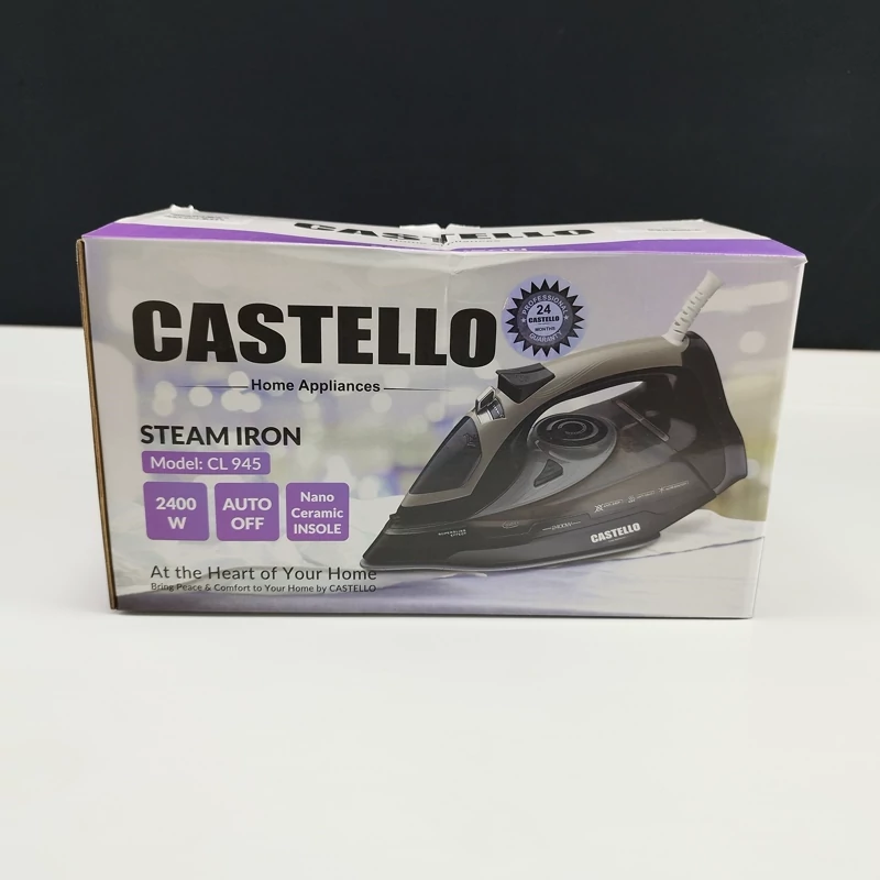 اتو بخار کاستلو مدل 945 با طراحی زیبا، وزن سبک و کارکردی آسان، یکی از اتو های بسیار محبوب و مورد قبول کاربران است به گونهای که قادر است چروک های عمیق لباسها را به راحتی از بین برده و در کمترین زمان لباسی صاف و اتو کشیده داشته باشید.در اتو بخار 945 از کفی سرامیکی نانو استفاده شده است که اتوکردن لباس را بسیار راحتتر و روانتر کرده است.طول عمر و کیفیت کفی سرامیکی از کفی استیل بیشتر بوده و آسیبی به پارچه نمی رساند .این دستگاه با توان 2400 وات و عملکردی بی نظیر قادر است، چروکهای عمیق لباسها را به راحتی از بین ببرد و البسه را در حداقل زمان صاف و مرتب کند که وجود چنین قابلیتی برای زندگی های امروزی بسیار ایده ال می باشد.