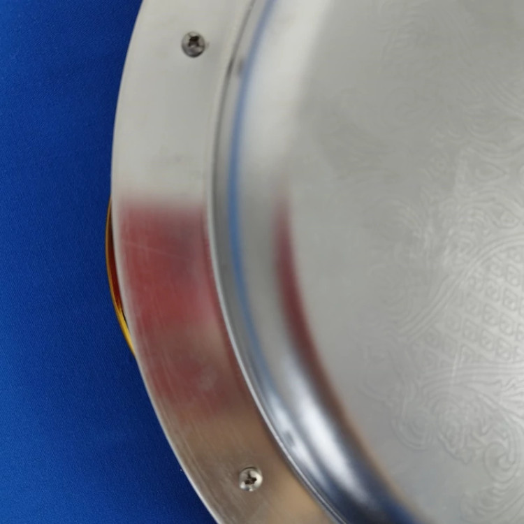 سینی دارای دسته پروانه شکل صدفی طلایی می باشد که با پیچ به بدنه متصل میباشند