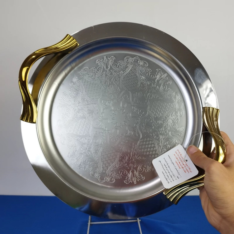سینی استیل آرتیستون گرد دسته طلایی کد 14479